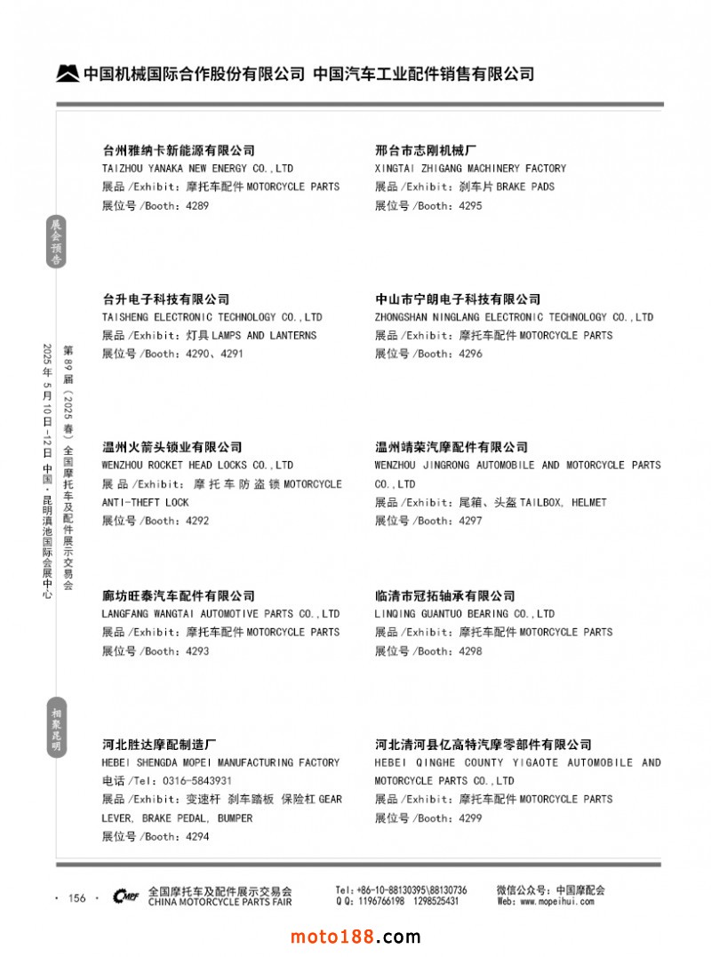 內(nèi)69-188 第88屆(2024秋)全國摩托車及配件展示交易會-廣州站參展企業(yè)信息