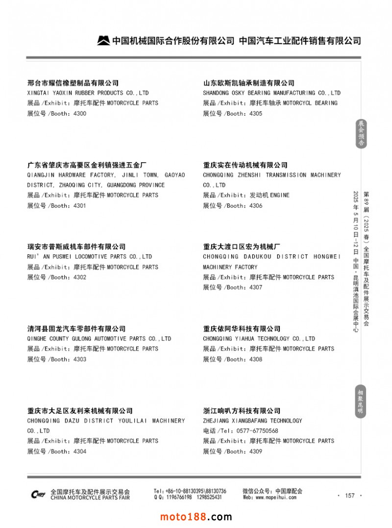 內(nèi)69-188 第88屆(2024秋)全國摩托車及配件展示交易會-廣州站參展企業(yè)信息