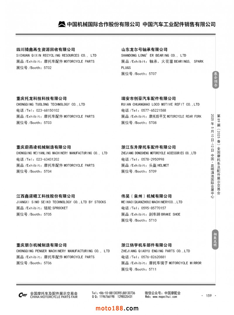內(nèi)69-188 第88屆(2024秋)全國(guó)摩托車及配件展示交易會(huì)-廣州站參展企業(yè)信息