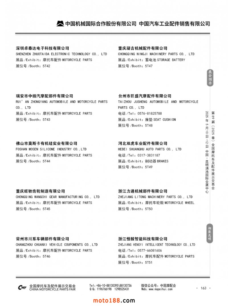 內(nèi)69-188 第88屆(2024秋)全國(guó)摩托車及配件展示交易會(huì)-廣州站參展企業(yè)信息