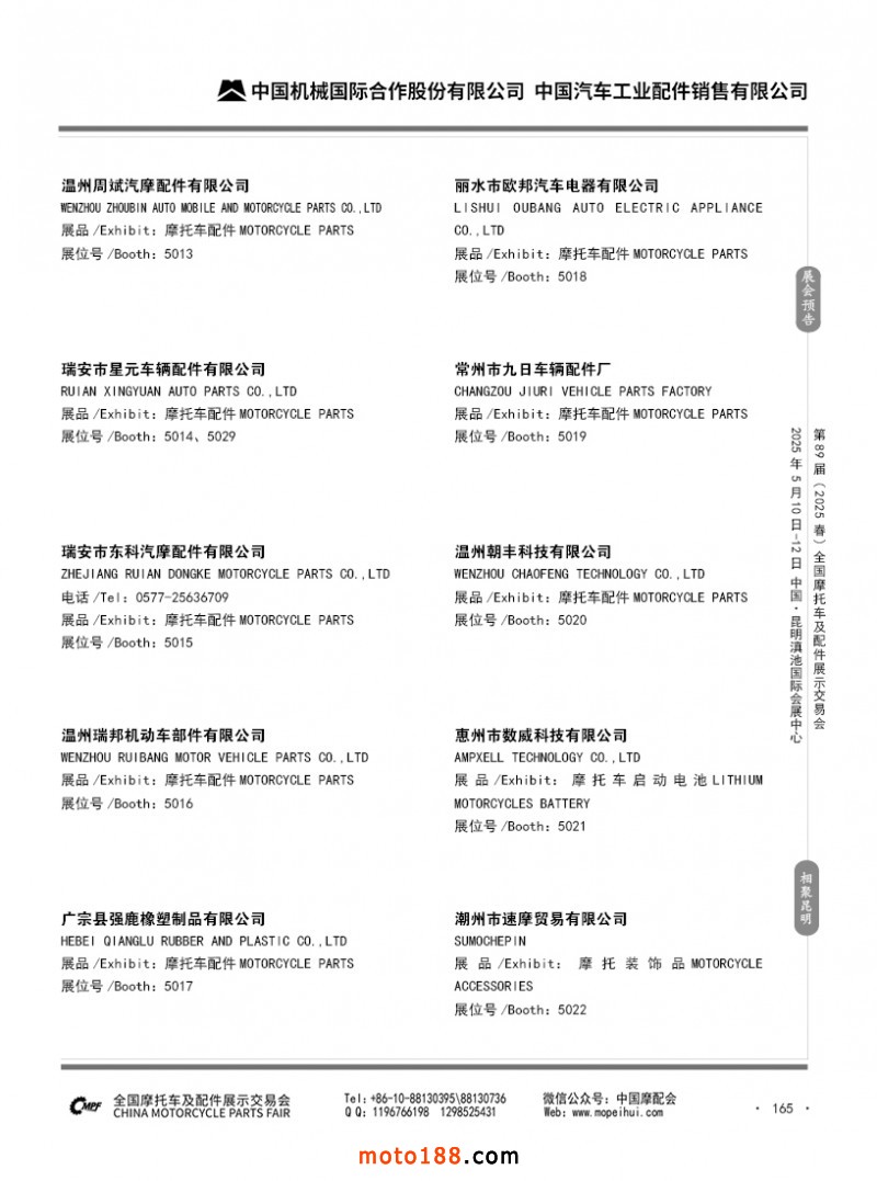 內(nèi)69-188 第88屆(2024秋)全國(guó)摩托車(chē)及配件展示交易會(huì)-廣州站參展企業(yè)信息