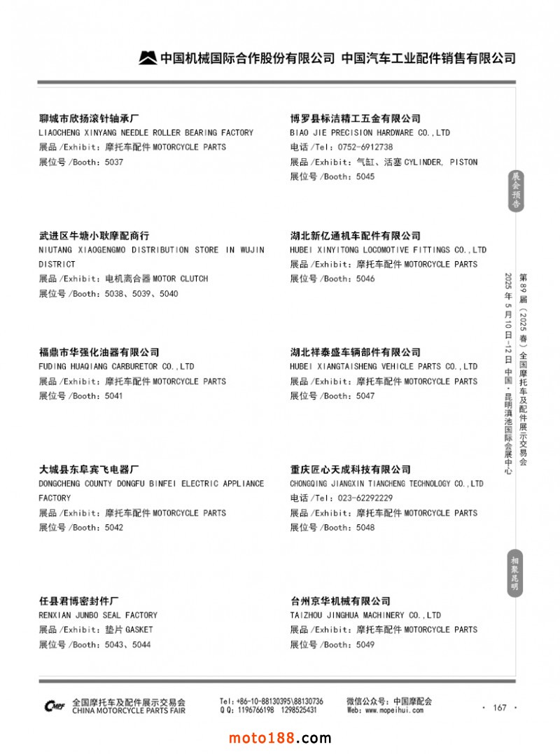 內(nèi)69-188 第88屆(2024秋)全國(guó)摩托車及配件展示交易會(huì)-廣州站參展企業(yè)信息
