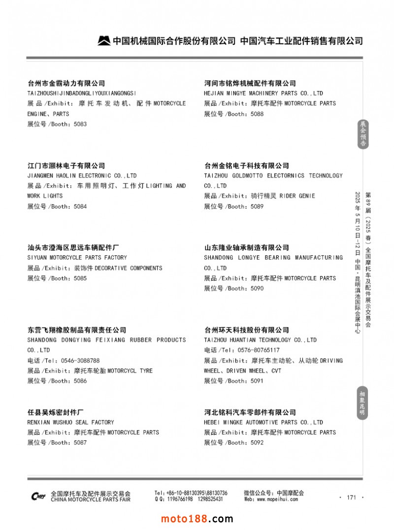 內(nèi)69-188 第88屆(2024秋)全國摩托車及配件展示交易會-廣州站參展企業(yè)信息