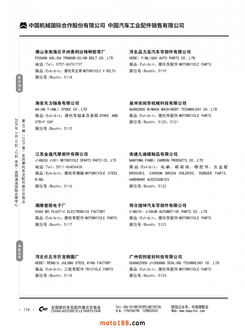 內(nèi)69-188 第88屆(2024秋)全國摩托車及配件展示交易會-廣州站參展企業(yè)信息