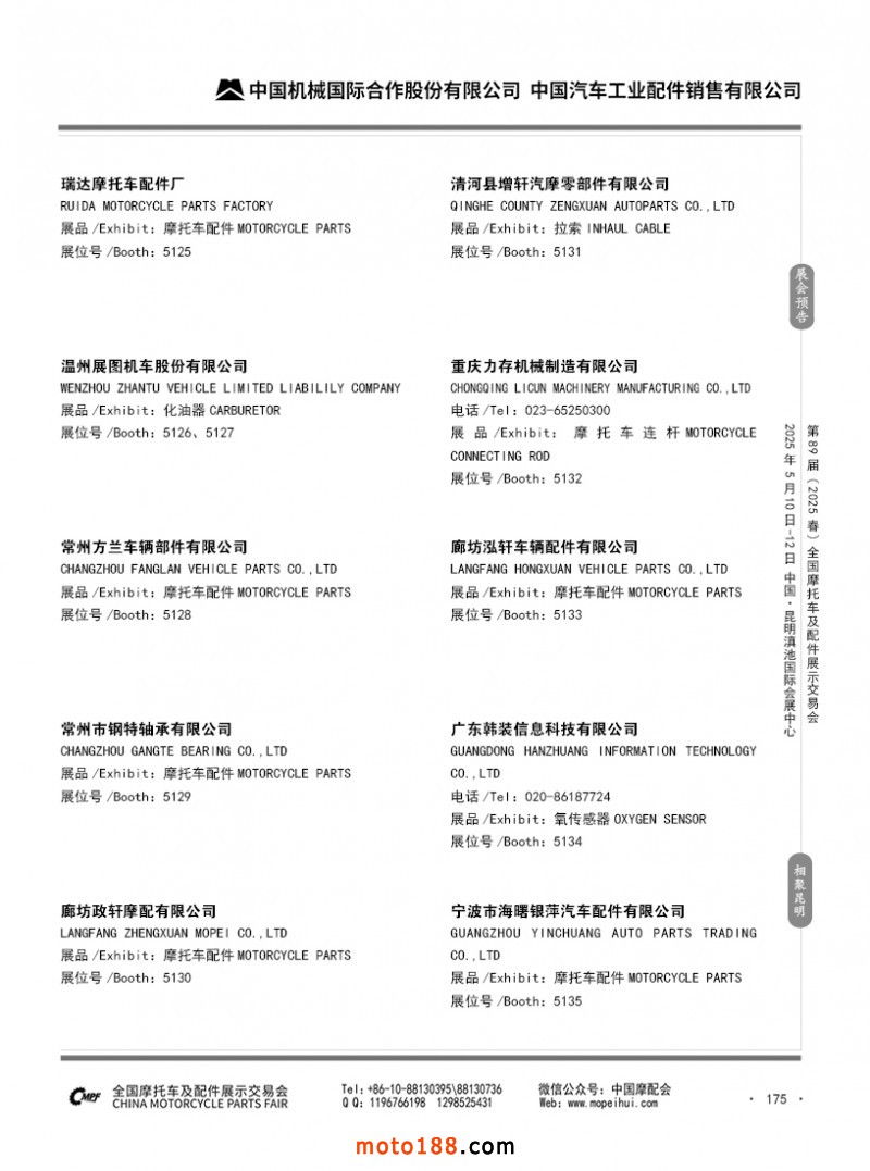 內(nèi)69-188 第88屆(2024秋)全國摩托車及配件展示交易會-廣州站參展企業(yè)信息