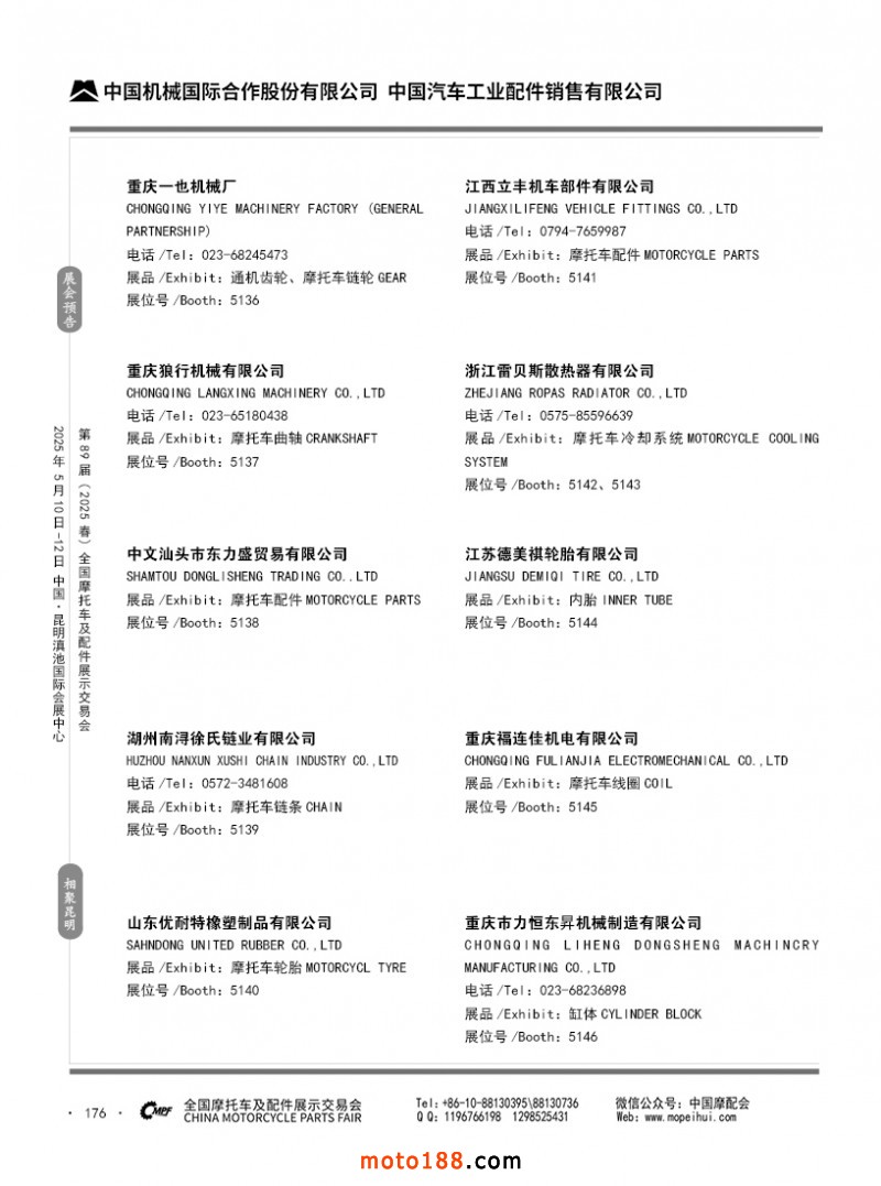 內(nèi)69-188 第88屆(2024秋)全國(guó)摩托車及配件展示交易會(huì)-廣州站參展企業(yè)信息