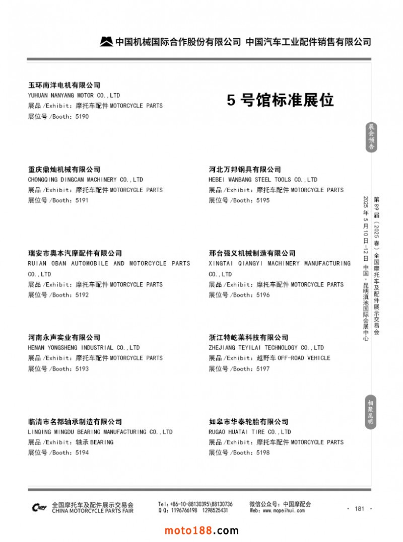 內(nèi)69-188 第88屆(2024秋)全國摩托車及配件展示交易會-廣州站參展企業(yè)信息
