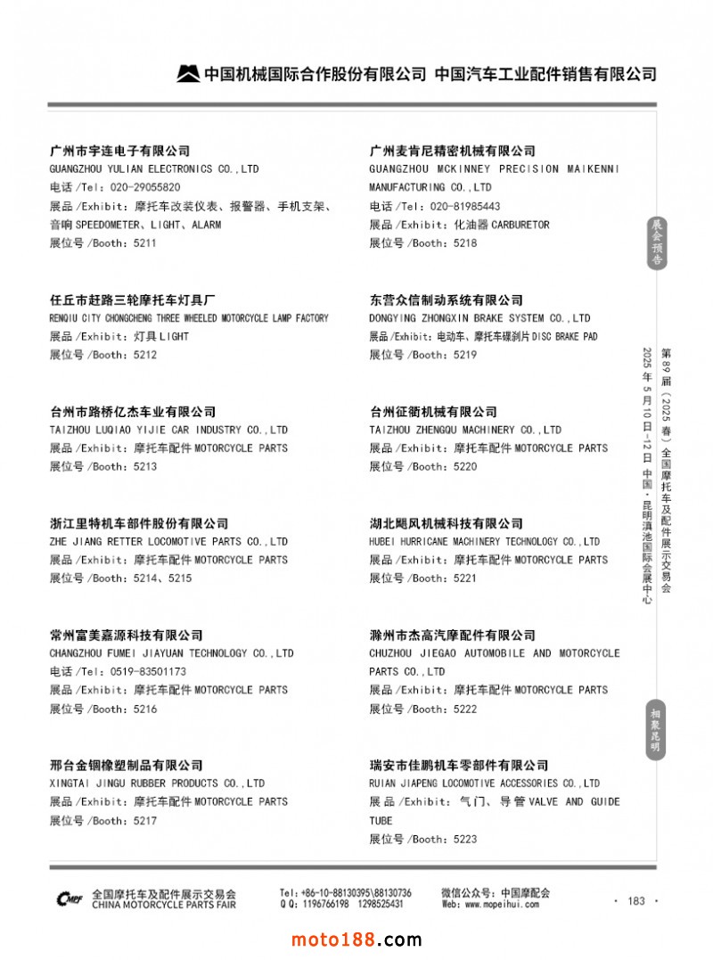 內(nèi)69-188 第88屆(2024秋)全國摩托車及配件展示交易會-廣州站參展企業(yè)信息
