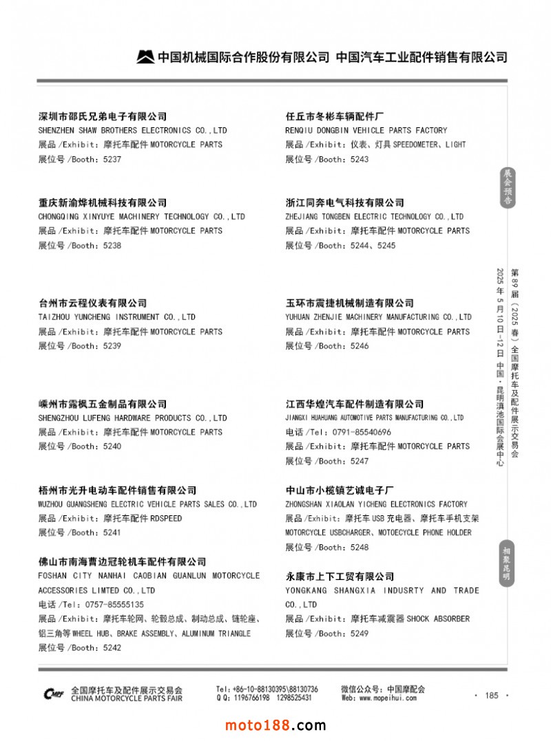 內(nèi)69-188 第88屆(2024秋)全國摩托車及配件展示交易會-廣州站參展企業(yè)信息