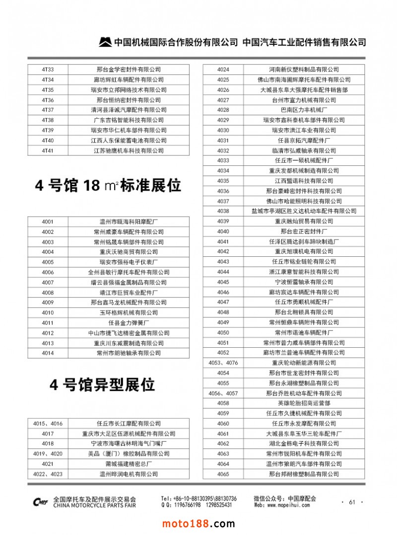 內(nèi)53-68 第88屆(2024秋)全國摩托車及配件展示交易會-廣州站參展單位名錄