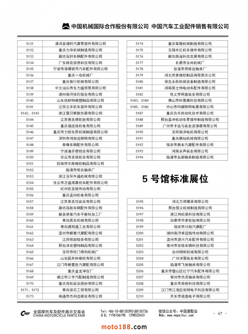 內(nèi)53-68 第88屆(2024秋)全國摩托車及配件展示交易會-廣州站參展單位名錄