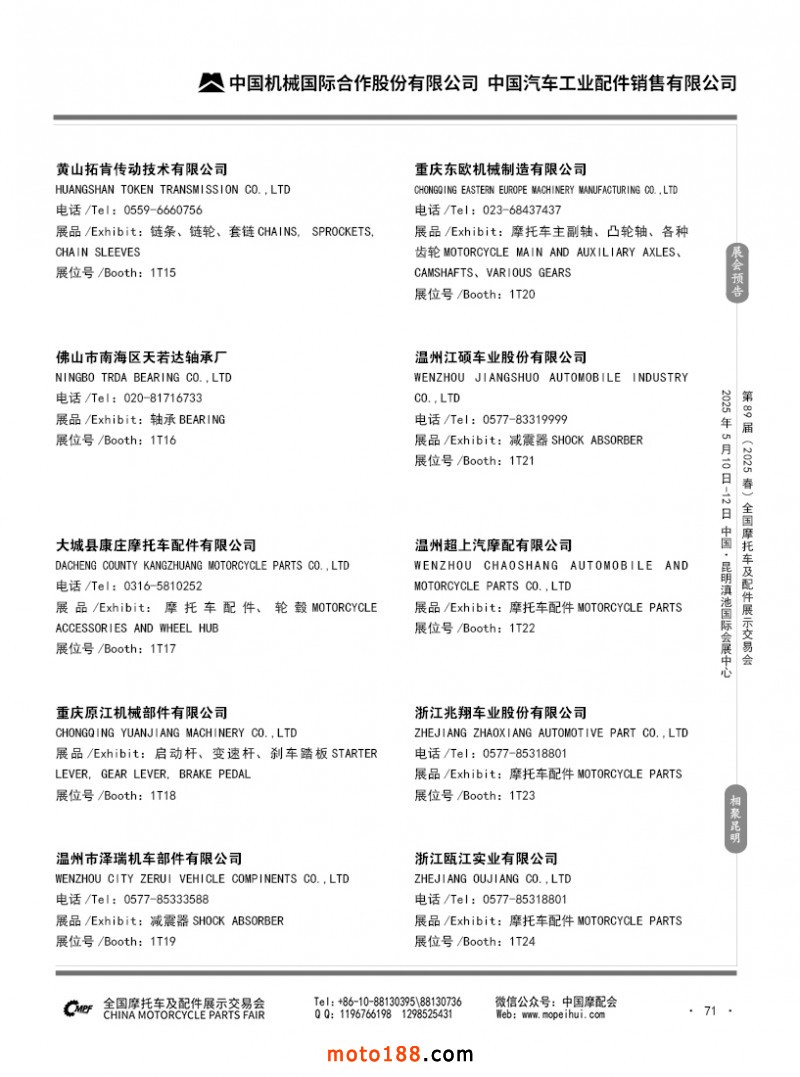 內(nèi)69-188 第88屆(2024秋)全國摩托車及配件展示交易會-廣州站參展企業(yè)信息