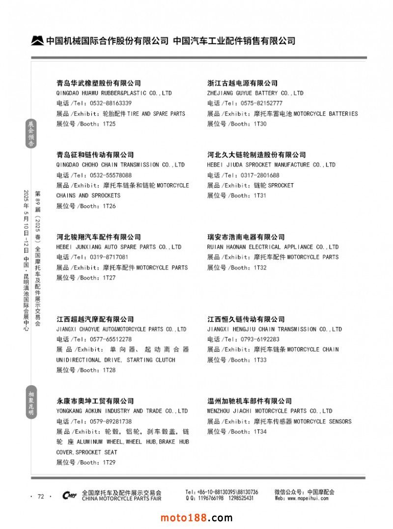 內(nèi)69-188 第88屆(2024秋)全國摩托車及配件展示交易會(huì)-廣州站參展企業(yè)信息