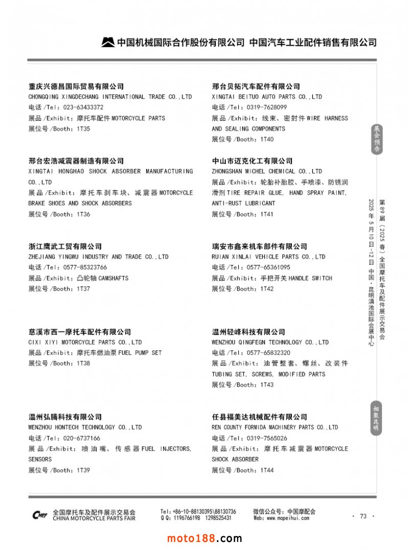 內(nèi)69-188 第88屆(2024秋)全國摩托車及配件展示交易會(huì)-廣州站參展企業(yè)信息