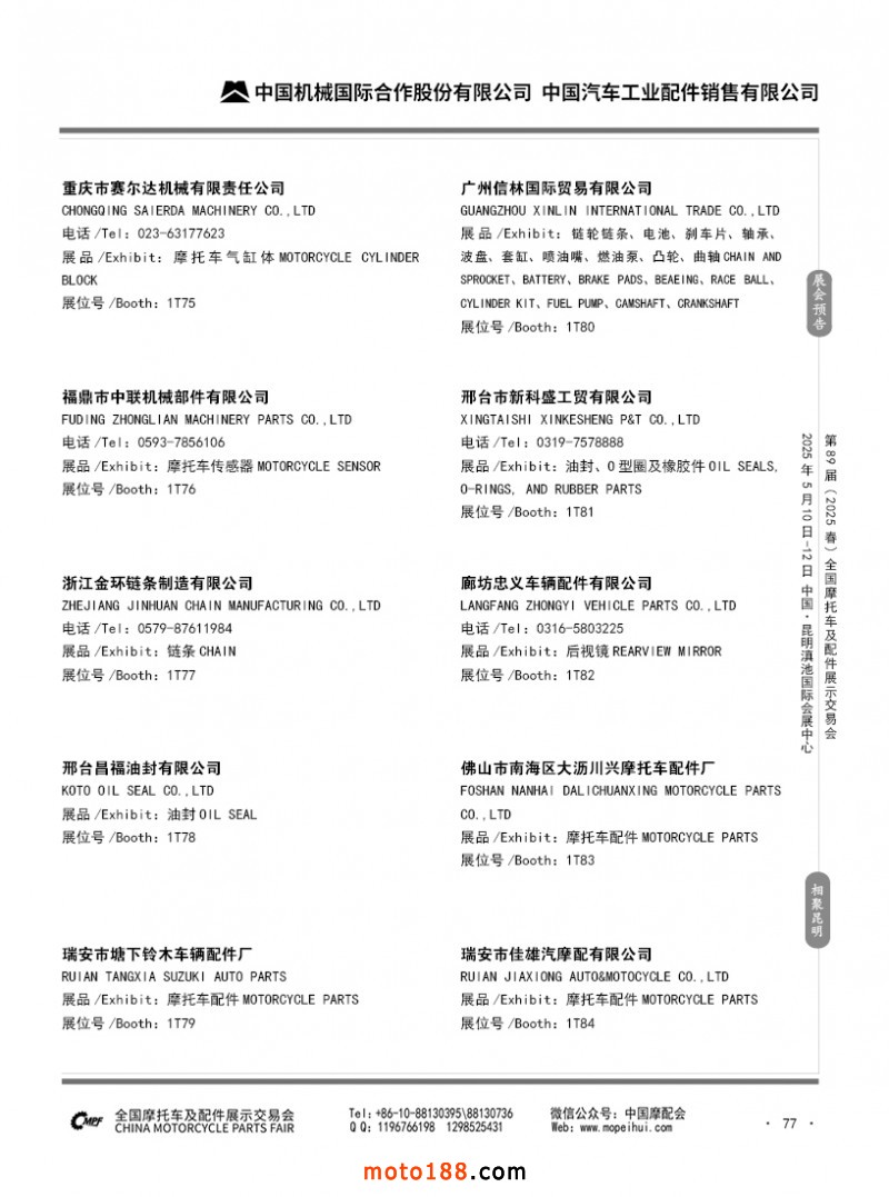 內(nèi)69-188 第88屆(2024秋)全國(guó)摩托車及配件展示交易會(huì)-廣州站參展企業(yè)信息