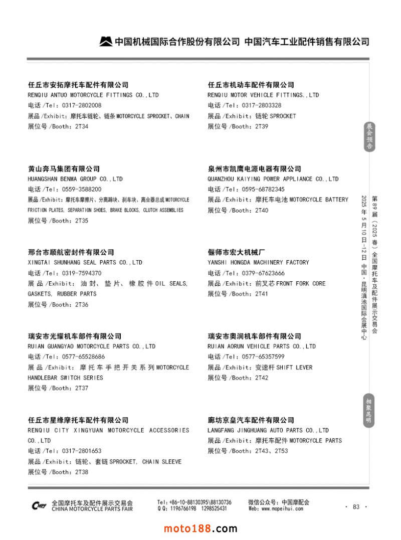 內(nèi)69-188 第88屆(2024秋)全國摩托車及配件展示交易會(huì)-廣州站參展企業(yè)信息