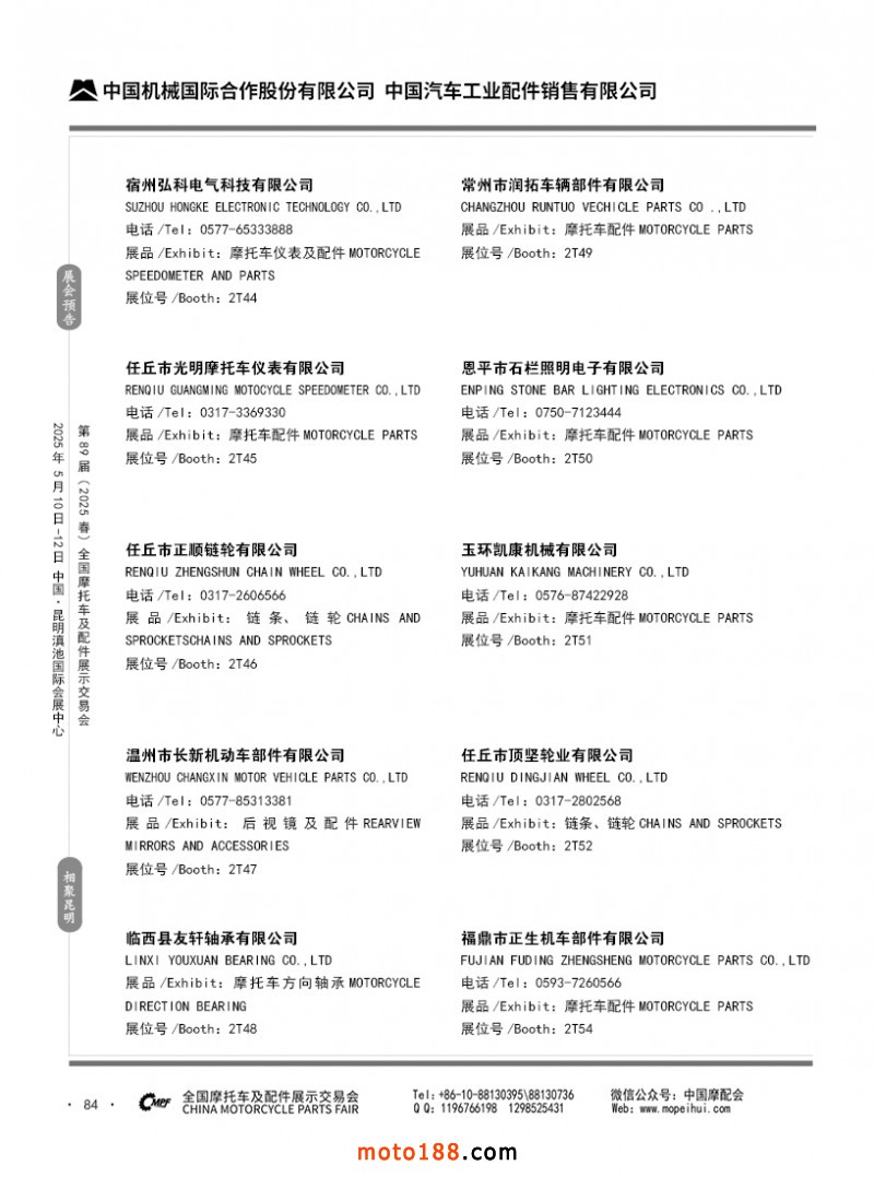 內69-188 第88屆(2024秋)全國摩托車及配件展示交易會-廣州站參展企業(yè)信息