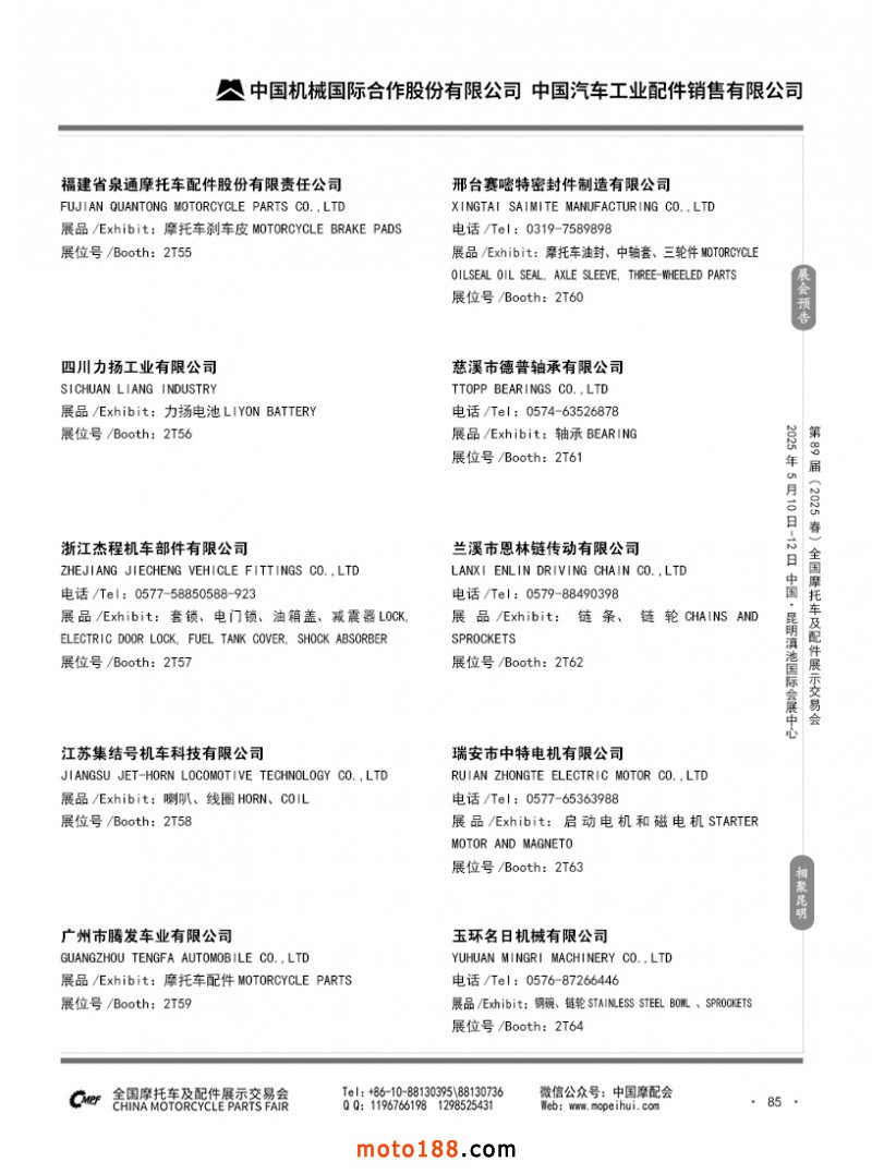 內(nèi)69-188 第88屆(2024秋)全國(guó)摩托車及配件展示交易會(huì)-廣州站參展企業(yè)信息