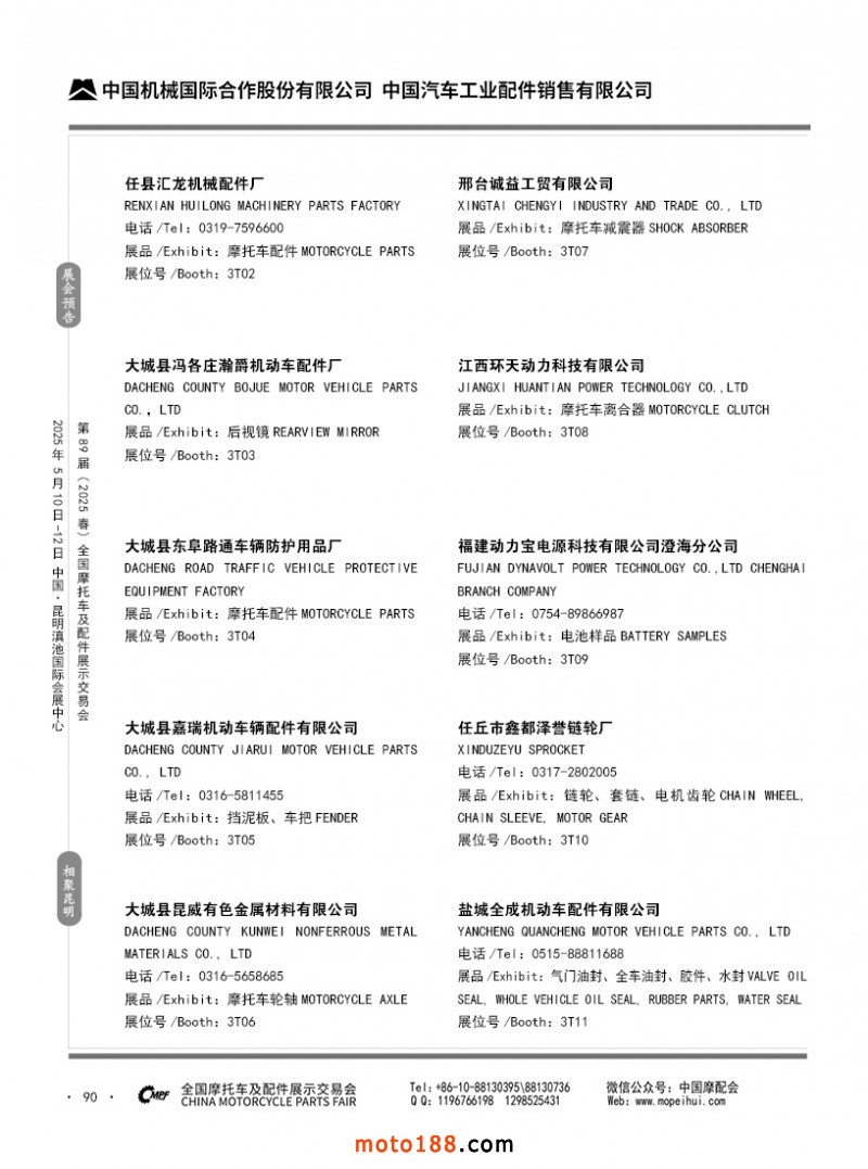 內(nèi)69-188 第88屆(2024秋)全國摩托車及配件展示交易會-廣州站參展企業(yè)信息