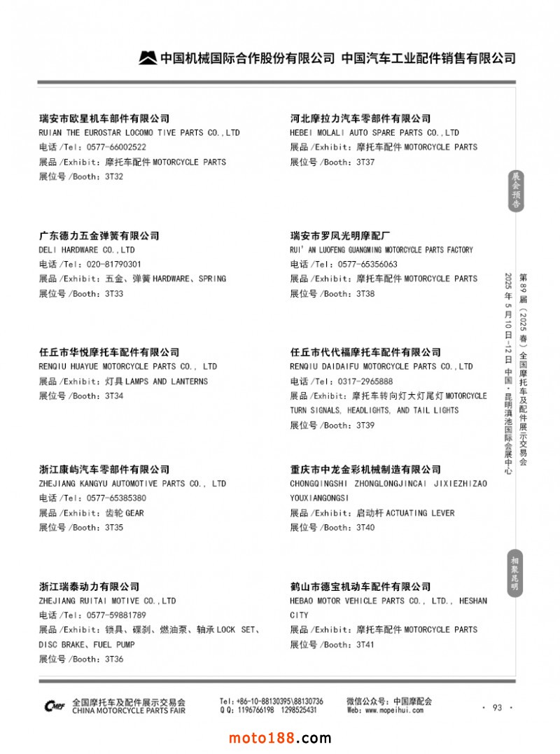 內(nèi)69-188 第88屆(2024秋)全國摩托車及配件展示交易會-廣州站參展企業(yè)信息