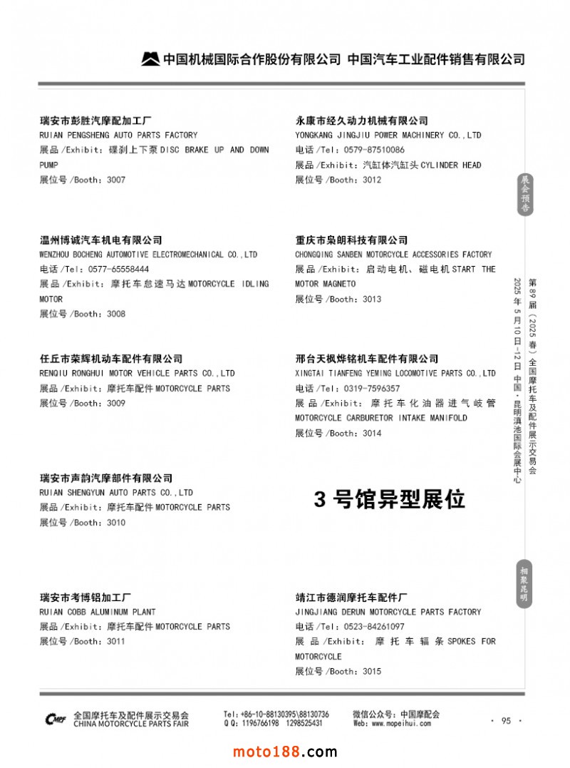 內(nèi)69-188 第88屆(2024秋)全國(guó)摩托車(chē)及配件展示交易會(huì)-廣州站參展企業(yè)信息