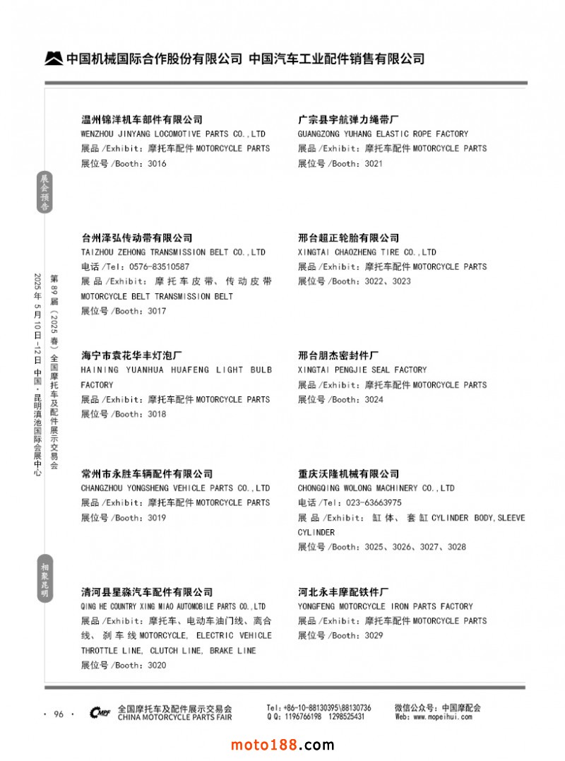 內(nèi)69-188 第88屆(2024秋)全國摩托車及配件展示交易會-廣州站參展企業(yè)信息