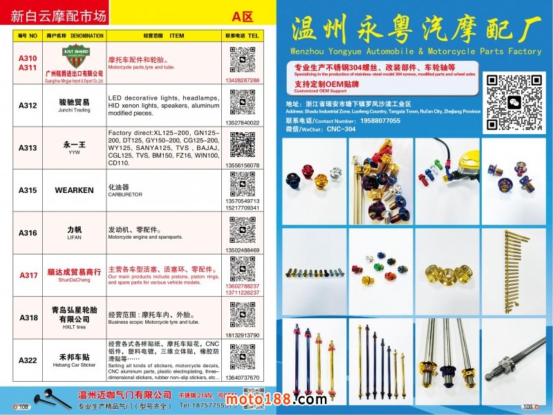 各摩配市場(chǎng)詳細(xì)資料請(qǐng)注冊(cè)我們的VIP會(huì)員咨詢 電話:0515-88436994 QQ:309362965、842467029、1051652573