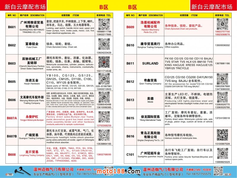 各摩配市場(chǎng)詳細(xì)資料請(qǐng)注冊(cè)我們的VIP會(huì)員咨詢 電話:0515-88436994 QQ:309362965、842467029、1051652573