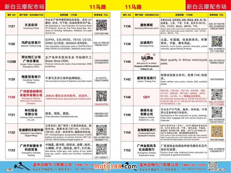 各摩配市場(chǎng)詳細(xì)資料請(qǐng)注冊(cè)我們的VIP會(huì)員咨詢 電話:0515-88436994 QQ:309362965、842467029、1051652573