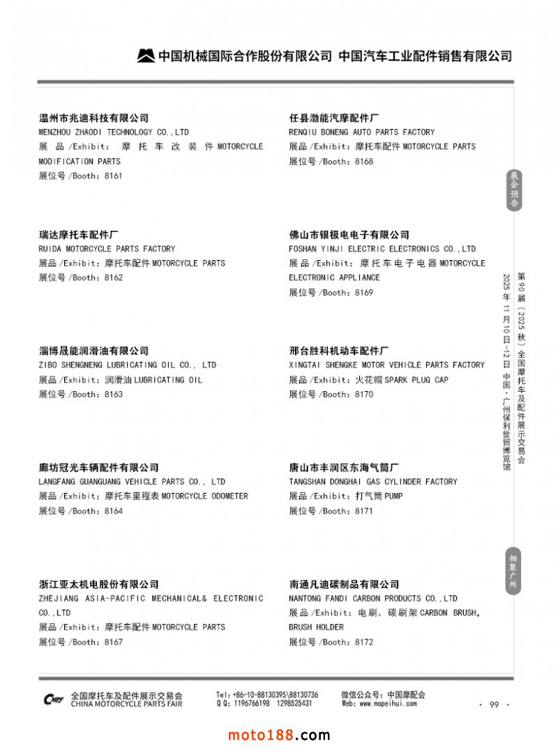 內(nèi)99 第89屆(2025春)全國摩托車及配件展示交易會-昆明站參展企業(yè)信息