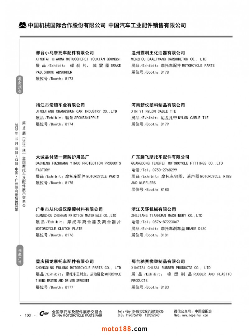 內(nèi)100 第89屆(2025春)全國摩托車及配件展示交易會(huì)-昆明站參展企業(yè)信息