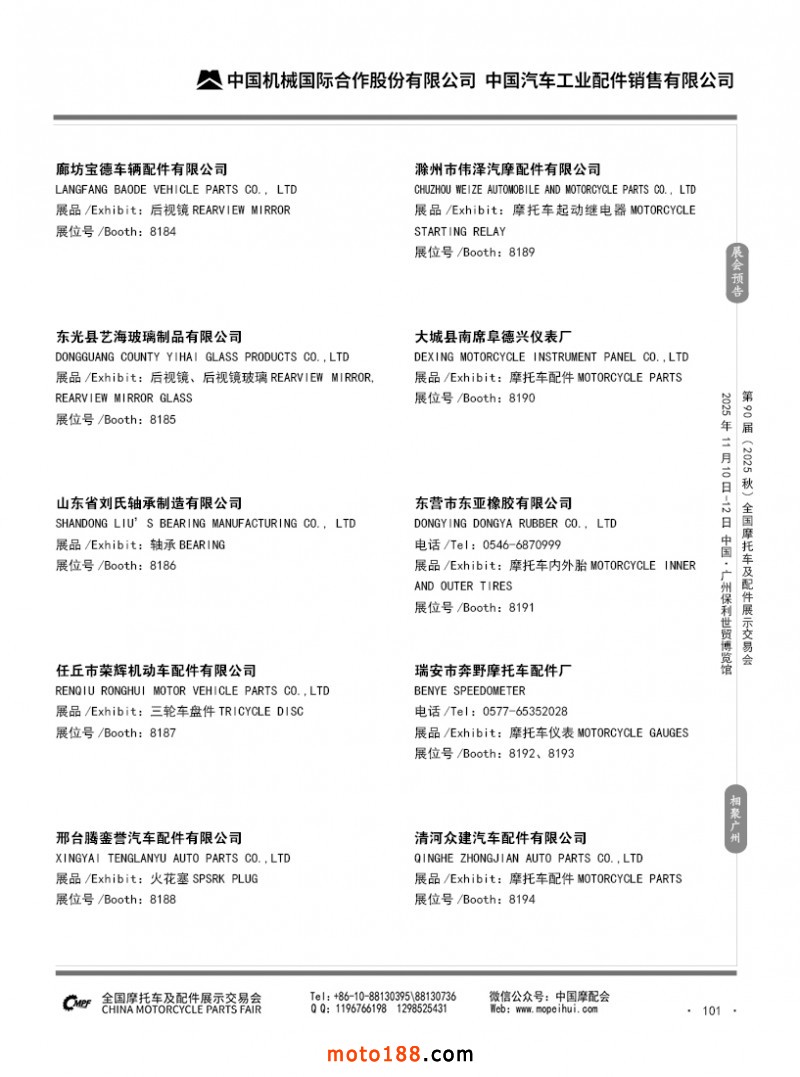 內(nèi)101 第89屆(2025春)全國(guó)摩托車及配件展示交易會(huì)-昆明站參展企業(yè)信息