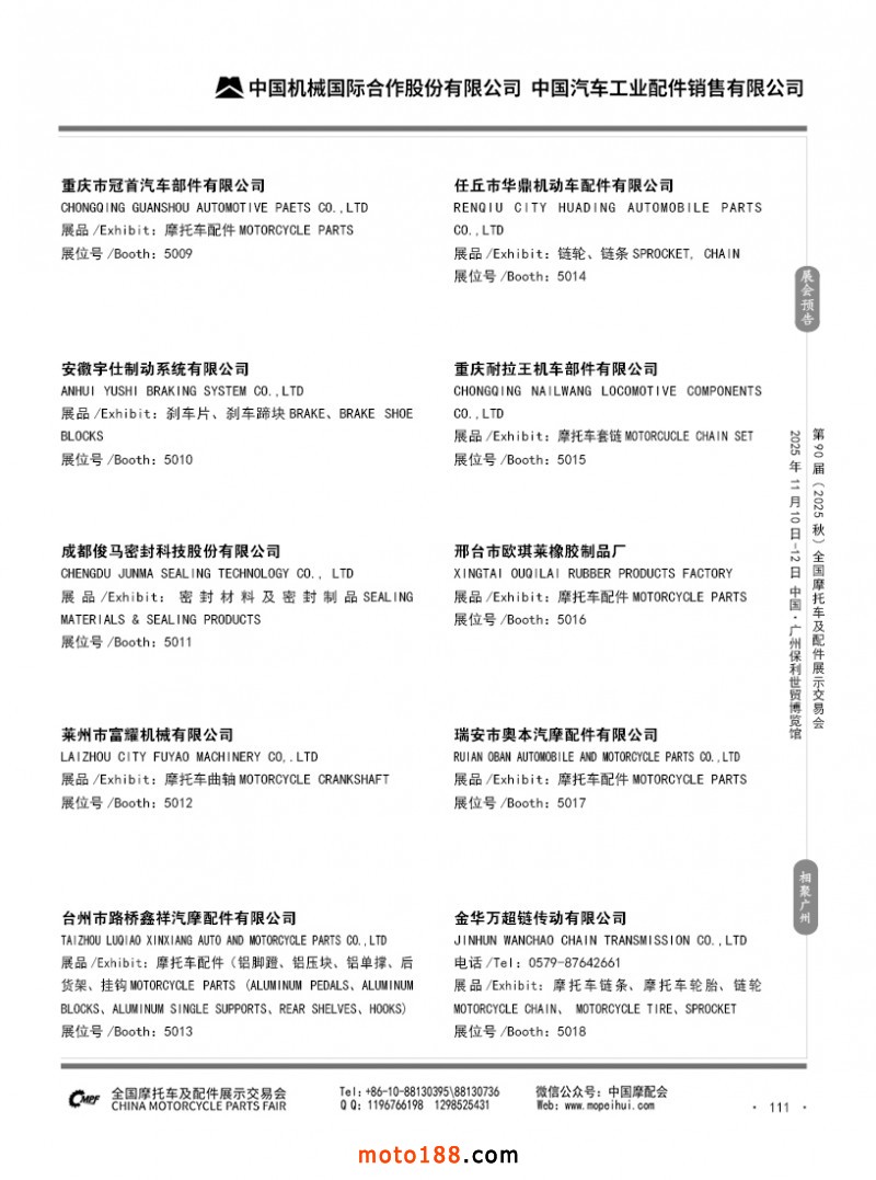 內(nèi)111 第89屆(2025春)全國摩托車及配件展示交易會-昆明站參展企業(yè)信息