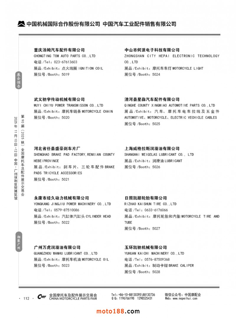 內(nèi)112 第89屆(2025春)全國摩托車及配件展示交易會-昆明站參展企業(yè)信息