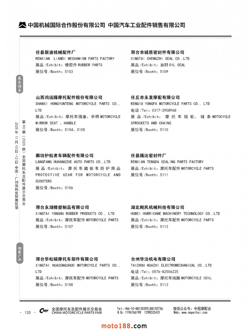 內(nèi)120 第89屆(2025春)全國摩托車及配件展示交易會-昆明站參展企業(yè)信息
