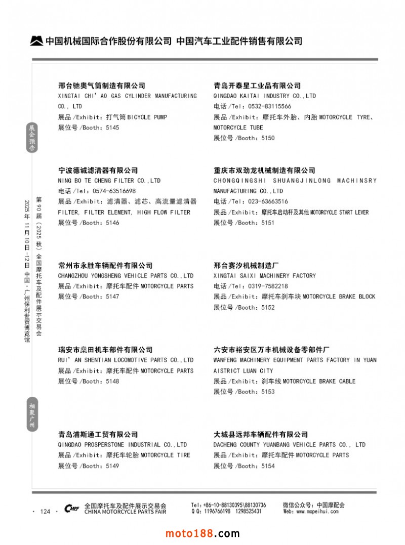 內(nèi)124 第89屆(2025春)全國(guó)摩托車(chē)及配件展示交易會(huì)-昆明站參展企業(yè)信息