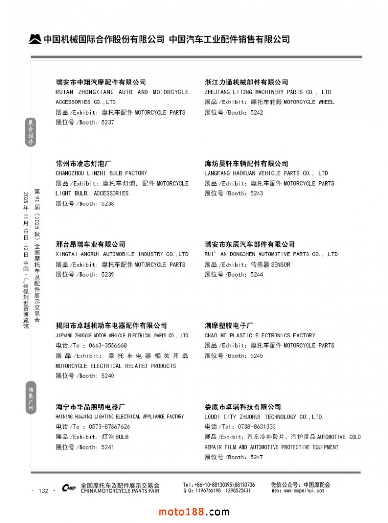內(nèi)132 第89屆(2025春)全國摩托車及配件展示交易會-昆明站參展企業(yè)信息