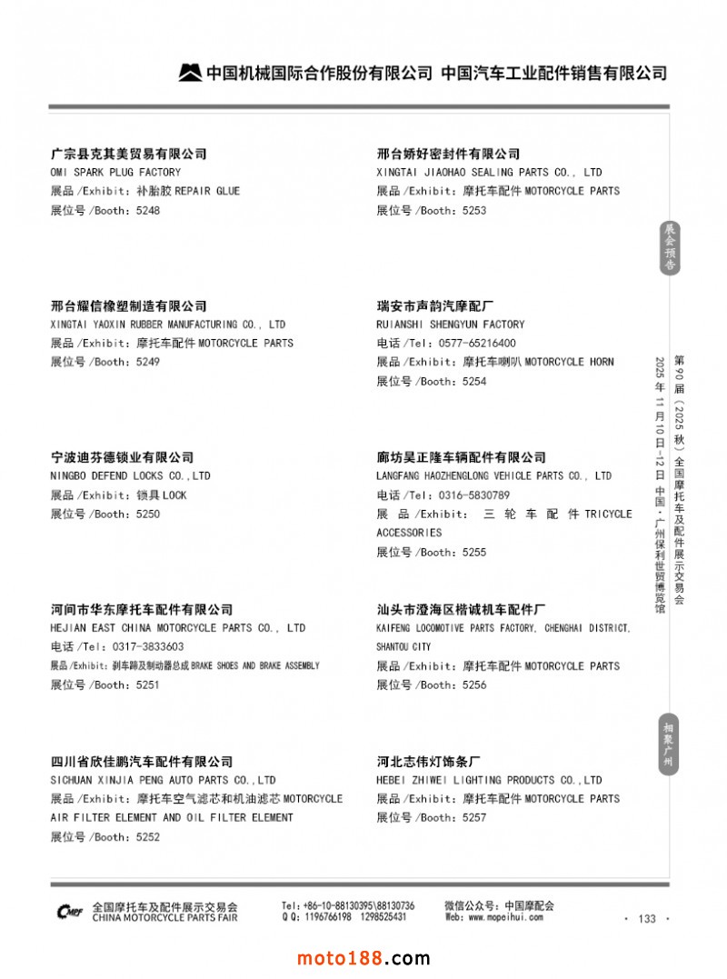 內(nèi)133 第89屆(2025春)全國摩托車及配件展示交易會-昆明站參展企業(yè)信息