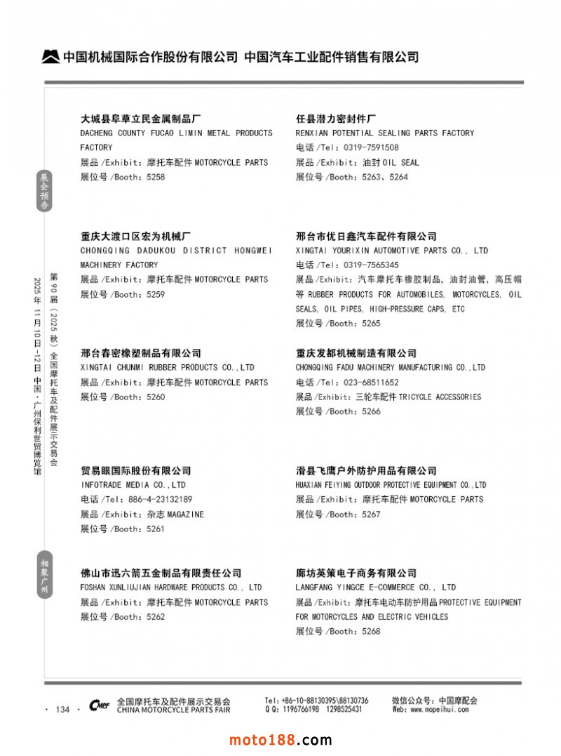 內(nèi)134 第89屆(2025春)全國(guó)摩托車及配件展示交易會(huì)-昆明站參展企業(yè)信息