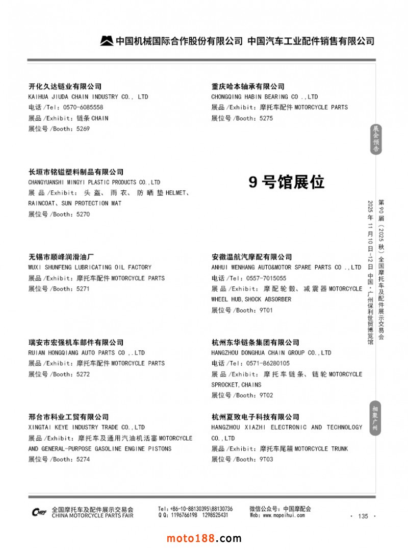 內(nèi)135 第89屆(2025春)全國摩托車及配件展示交易會(huì)-昆明站參展企業(yè)信息