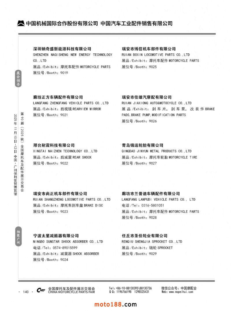 內(nèi)140 第89屆(2025春)全國摩托車及配件展示交易會-昆明站參展企業(yè)信息