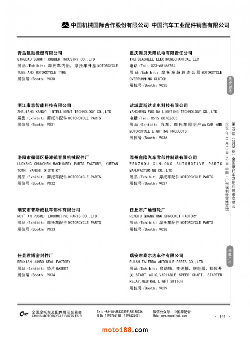 內(nèi)141 第89屆(2025春)全國摩托車及配件展示交易會-昆明站參展企業(yè)信息