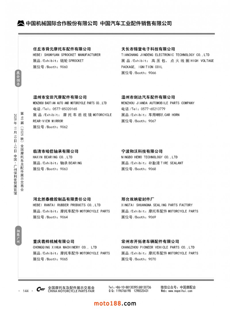 內(nèi)144 第89屆(2025春)全國(guó)摩托車及配件展示交易會(huì)-昆明站參展企業(yè)信息