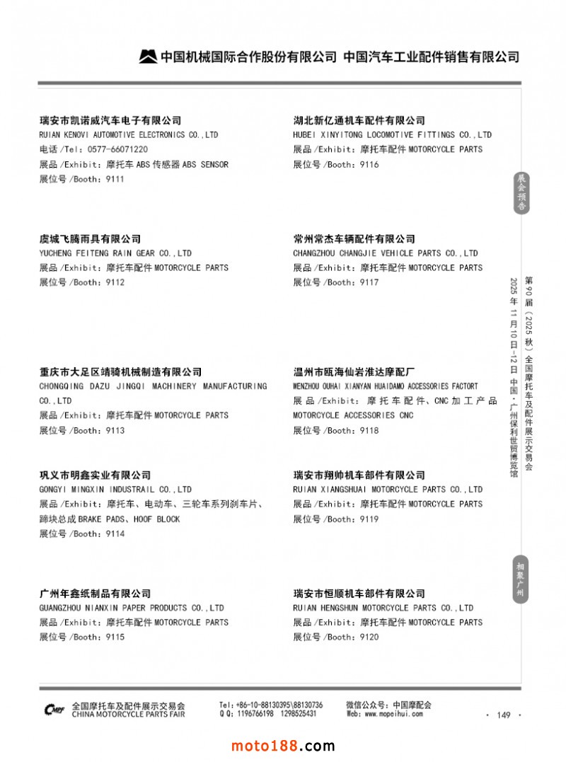 內(nèi)149 第89屆(2025春)全國摩托車及配件展示交易會(huì)-昆明站參展企業(yè)信息