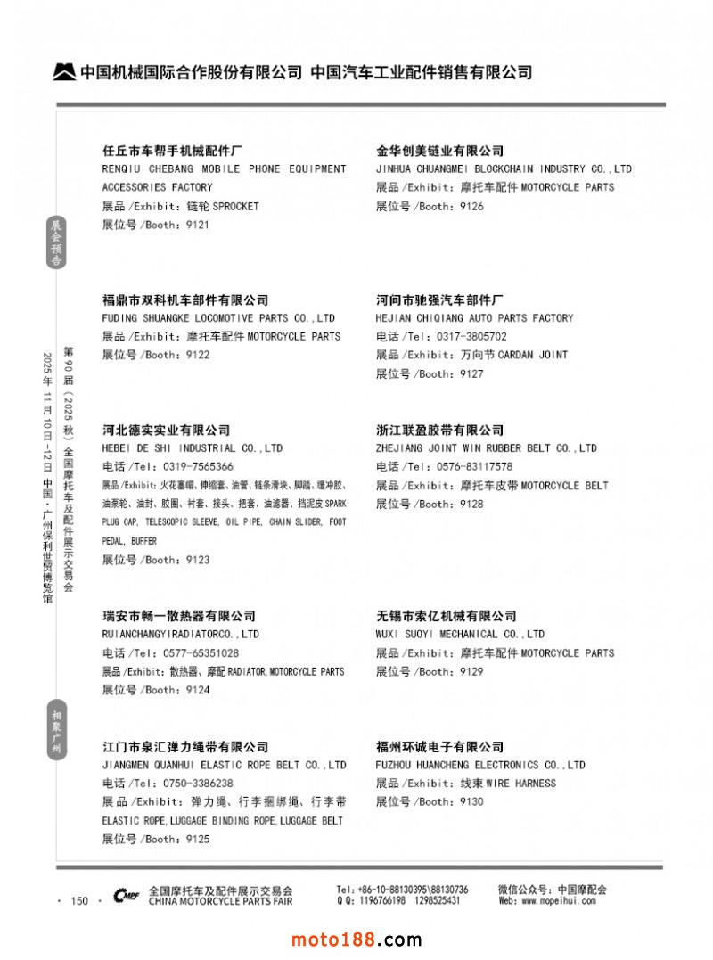內(nèi)150 第89屆(2025春)全國(guó)摩托車及配件展示交易會(huì)-昆明站參展企業(yè)信息