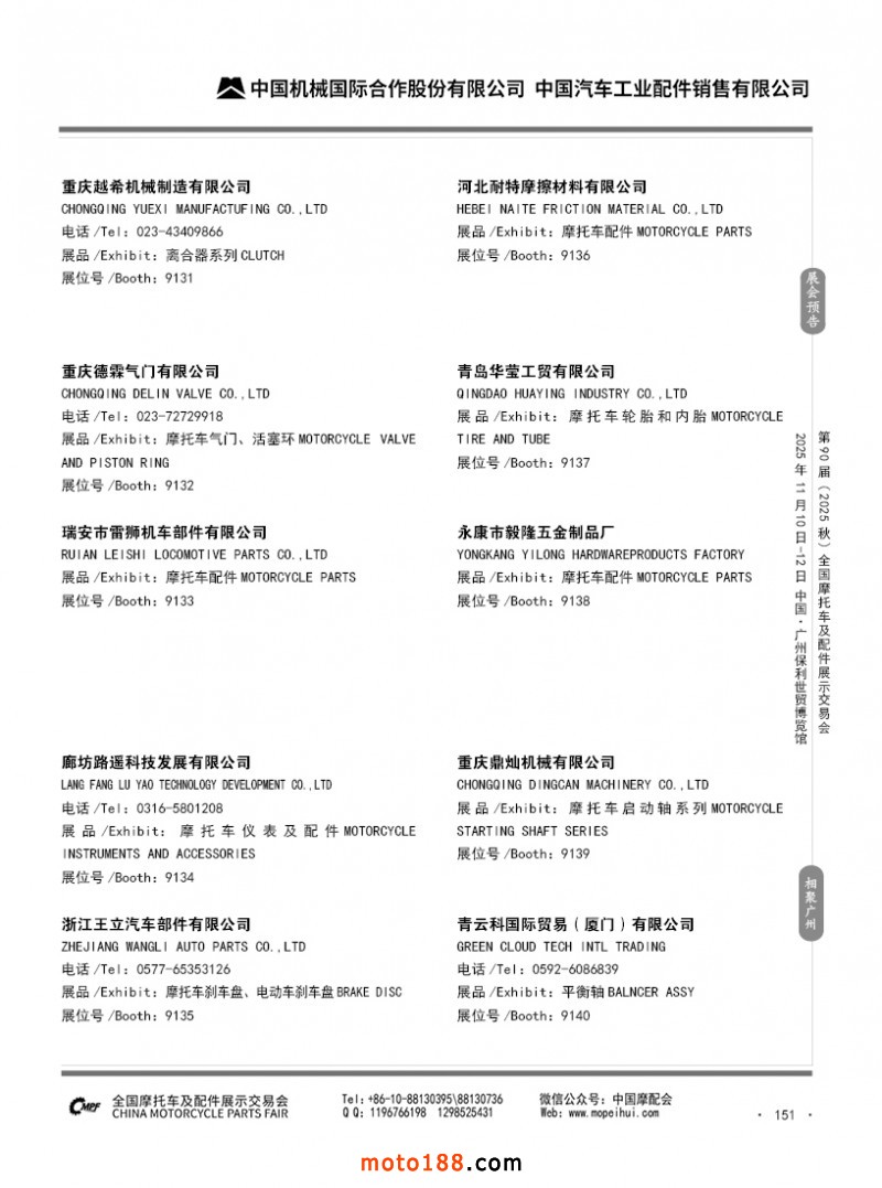 內(nèi)151 第89屆(2025春)全國(guó)摩托車及配件展示交易會(huì)-昆明站參展企業(yè)信息