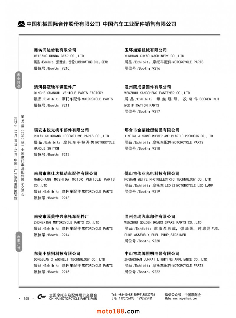 內(nèi)158 第89屆(2025春)全國摩托車及配件展示交易會-昆明站參展企業(yè)信息
