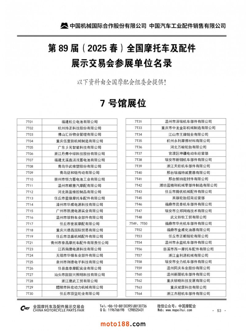 內(nèi)53 第89屆(2025春)全國摩托車及配件展示交易會-昆明站參展單位名錄