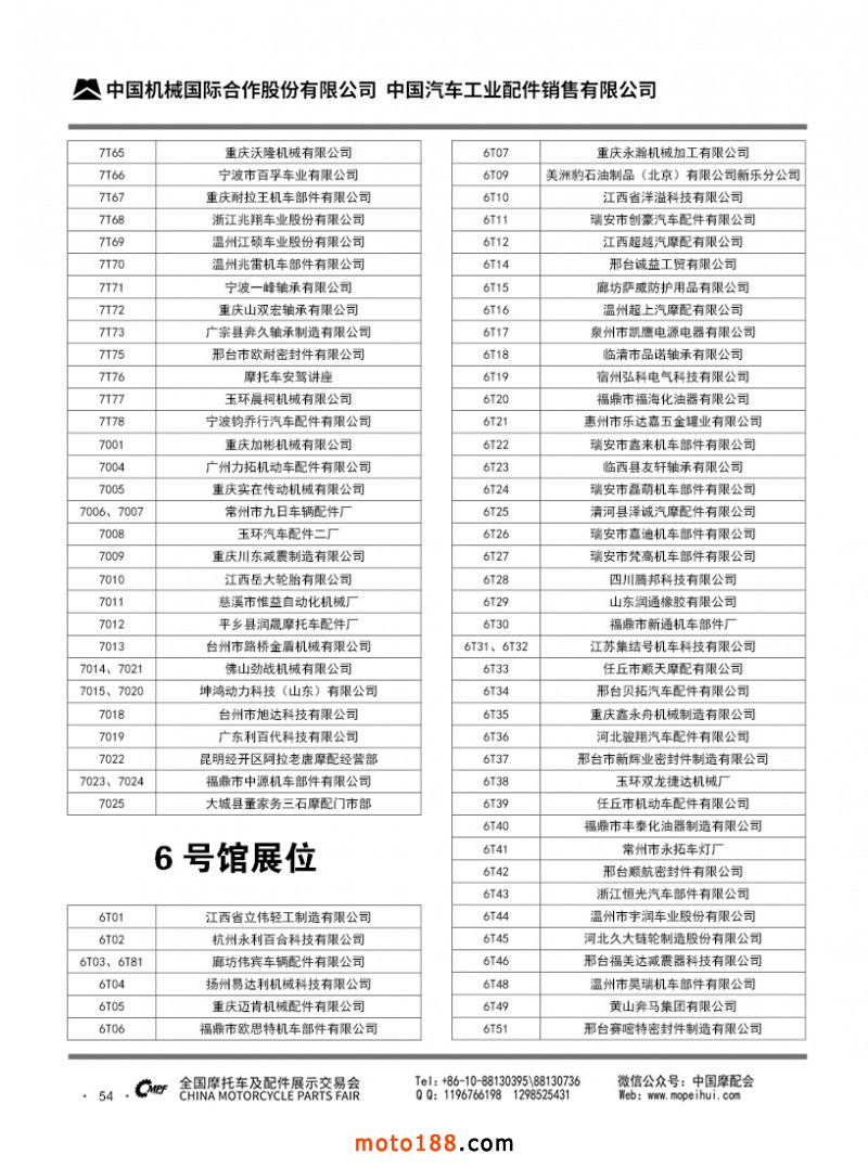 內(nèi)54 第89屆(2025春)全國(guó)摩托車及配件展示交易會(huì)-昆明站參展單位名錄