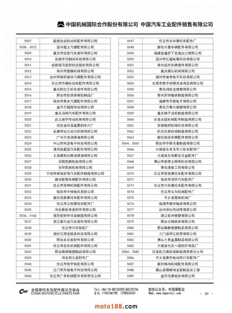 內(nèi)59 第89屆(2025春)全國摩托車及配件展示交易會-昆明站參展單位名錄